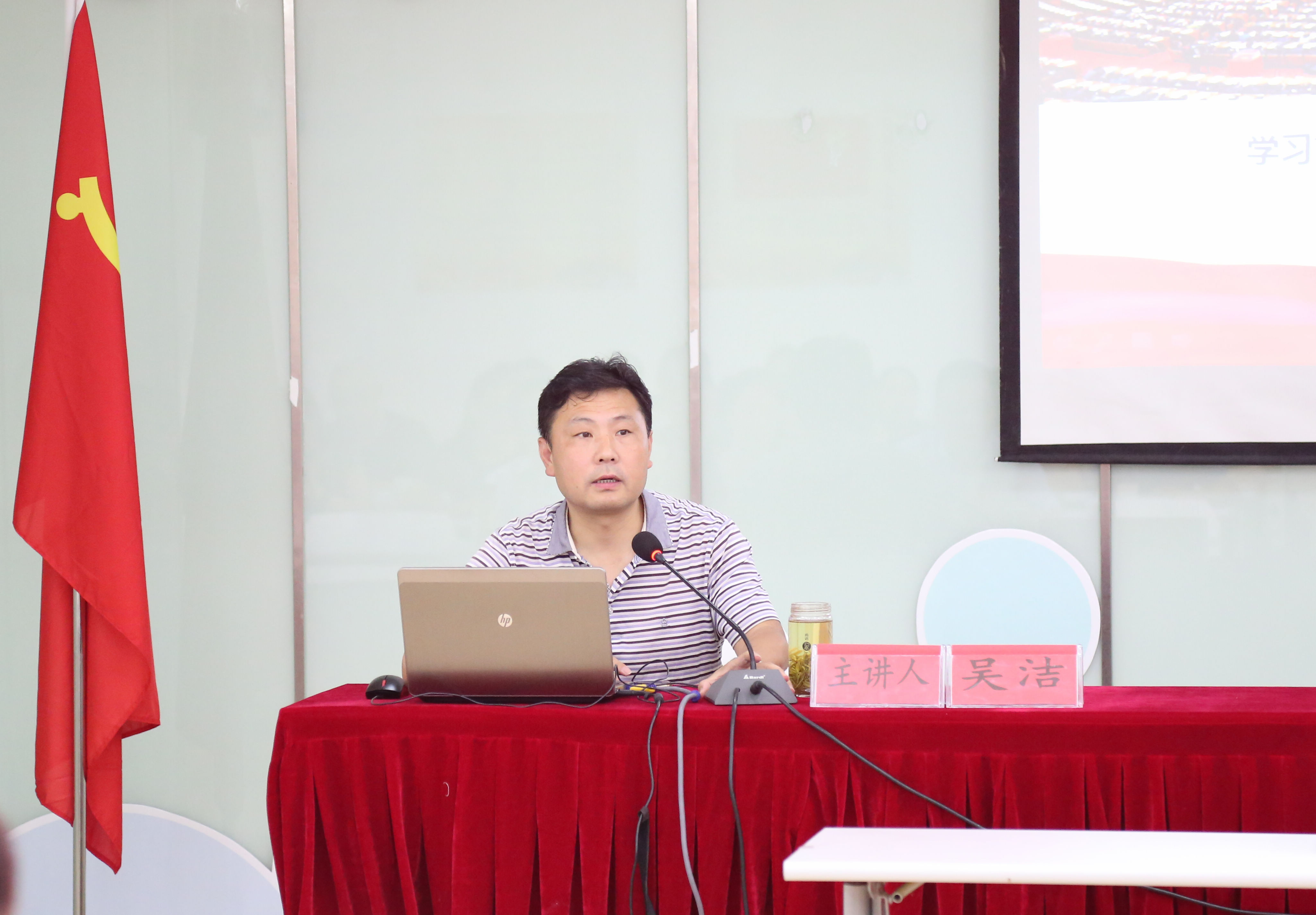 授課中,吳潔教授以“學習貫徹習近平新時代中國特色社會主義思想和黨的十九大精神”為主題,從深刻領會黨的十九大主題及主要成果、習近平新時代中國特色社會主義思想的歷史地位和豐富內(nèi)涵、十八大以來黨和國家發(fā)生的歷史性變革、新時代的社會主要矛盾新變化、全面建設現(xiàn)代化強國的戰(zhàn)略部署、堅定不移全面從嚴治黨的重大部署等六個方面,對習近平新時代中國特色社會主義思想及黨的十九大精神作了系統(tǒng)、全面的解讀與闡述。吳教授結合自己的學習體會,運用了大量生動的數(shù)據(jù)和事例,語言通俗易懂,邏輯清晰有秩,不斷引起在場黨員的共鳴,會上反響熱烈。