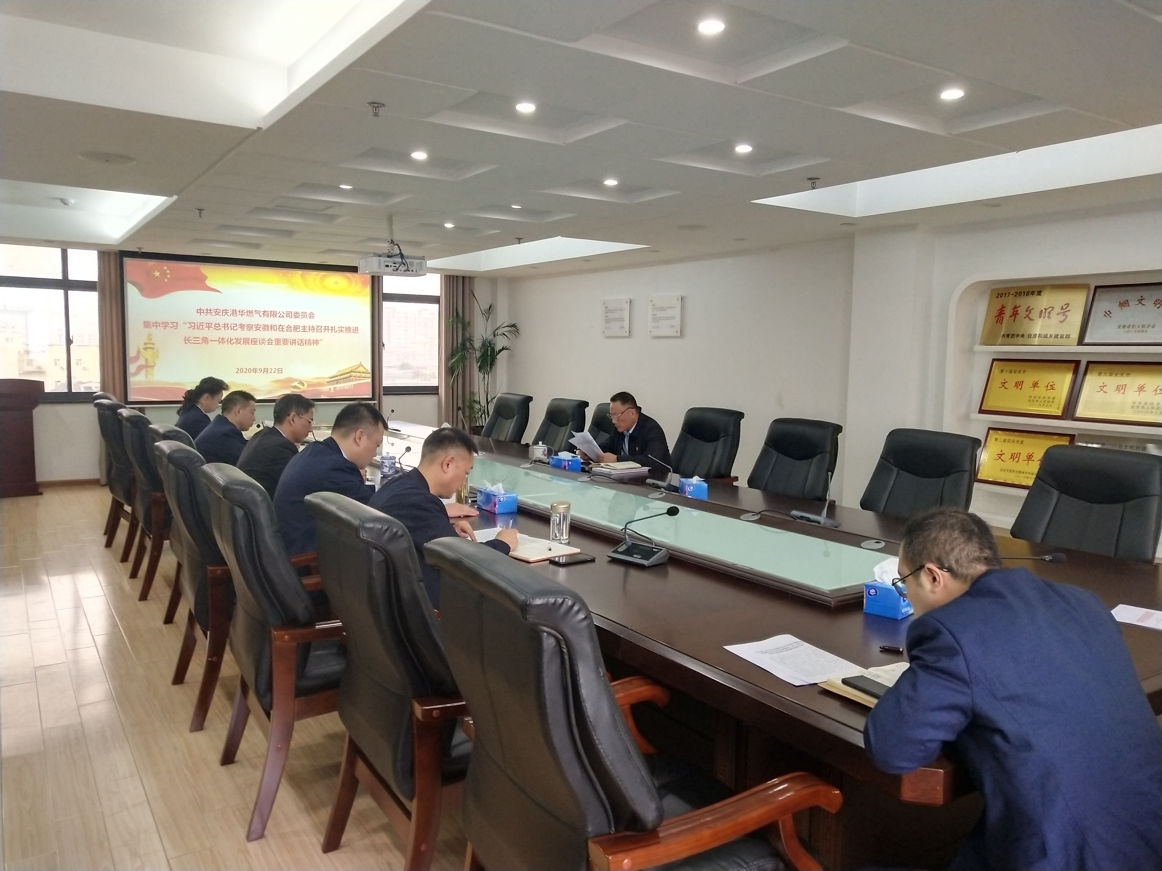 9月22日上午,安慶港華黨委組織召開“習(xí)近平總書記考察安徽和在合肥主持召開扎實推進長三角一體化發(fā)展座談會重要講話精神”集中學(xué)習(xí)會。