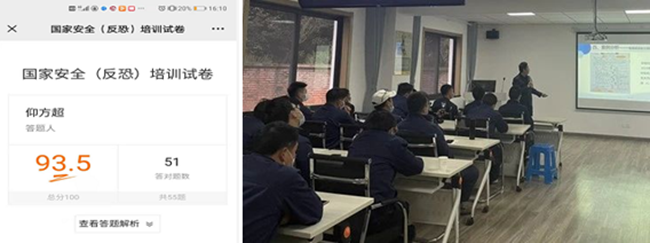 公司以部門(mén)、組別為單位,組織全體員工認(rèn)真學(xué)習(xí)《反恐怖主義法》《刑法》《國(guó)家安全法》等相關(guān)法律法規(guī),并開(kāi)展線上反恐理論知識(shí)答題考核,進(jìn)一步鞏固提升全員安全反恐防爆知識(shí)和能力。