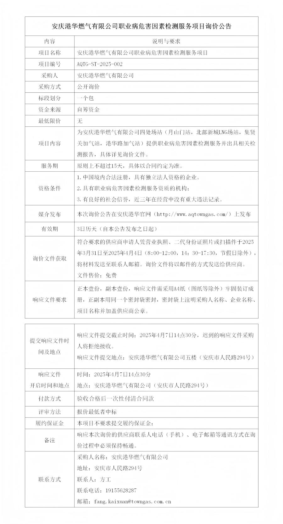 安慶港華燃?xì)庥邢薰韭殬I(yè)病危害因素檢測(cè)服務(wù)項(xiàng)目詢(xún)價(jià)公告