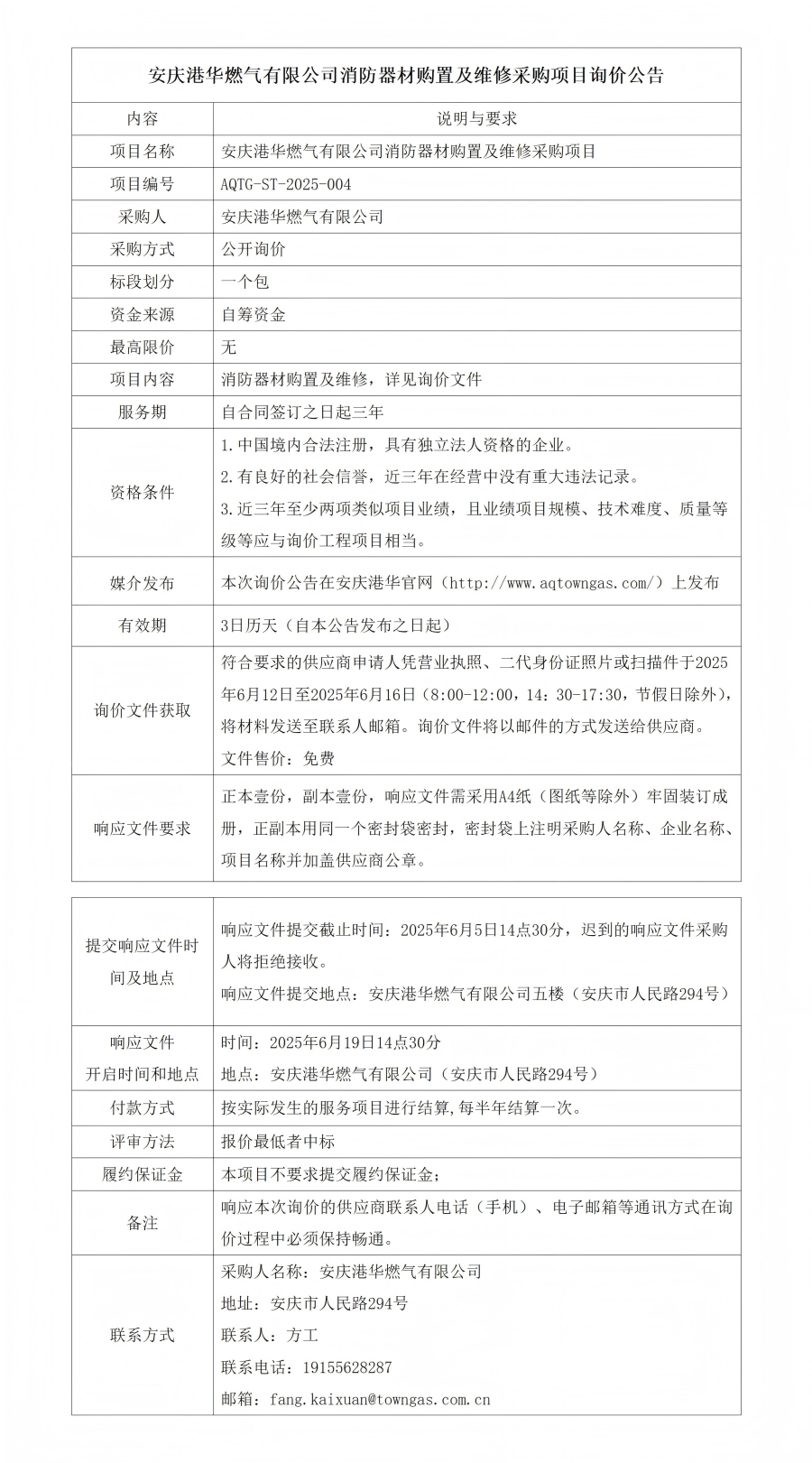 安慶港華燃?xì)庥邢薰鞠榔鞑馁?gòu)置及維修采購(gòu)項(xiàng)目詢(xún)價(jià)公告