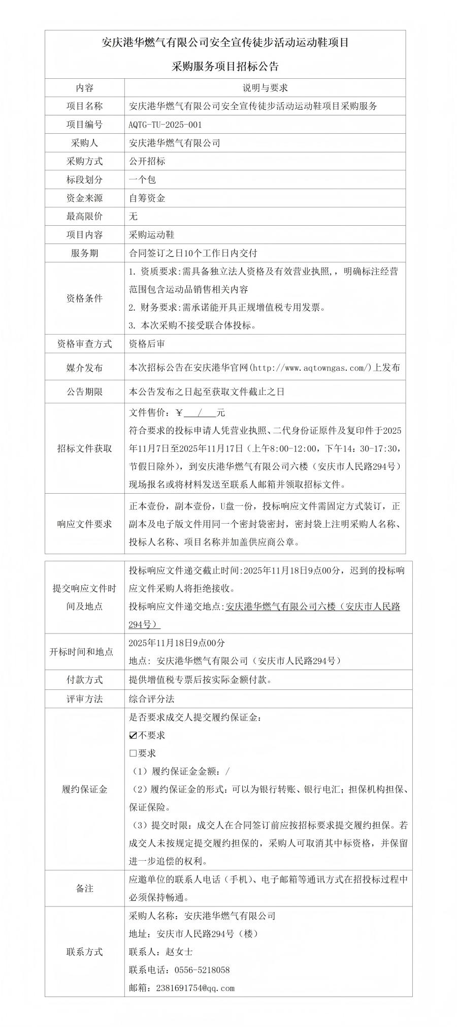 安慶港華燃?xì)庥邢薰景踩麄魍讲交顒舆\動鞋項目采購服務(wù)項目招標(biāo)公告