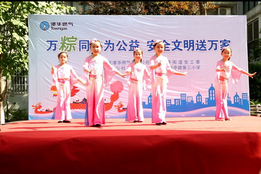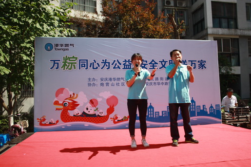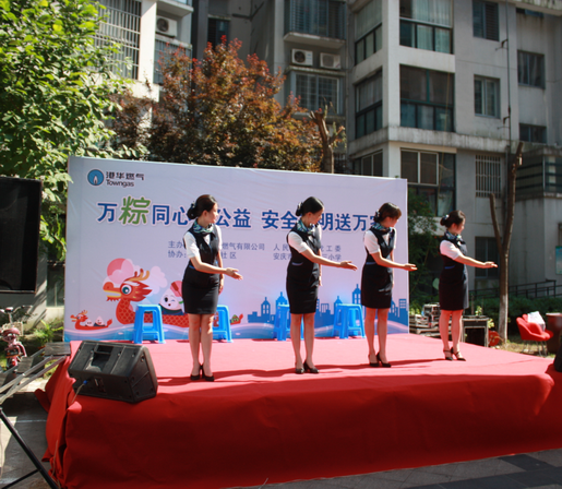 當日,安慶港華的義工隊員和“藍焰”黨員義工們早早來到炮營山社居委轄區(qū)的諧水灣小區(qū),撐帳篷,搭展臺,搬物料,一場以“包粽子、看演出、講安全、傳文明”為主題的文化大餐陸續(xù)上演。活動現(xiàn)場熱鬧非凡,不少用戶正在港華燃氣的“流動服務(wù)車”前排隊進行燃氣報裝和繳費,服務(wù)臺的工作人員一邊發(fā)放著燃氣安全宣傳手冊,一邊針對居民的用氣問題耐心作答。而廣場正中央搭建的演出舞臺更是吸引不少居民駐足圍觀,安慶港華燃氣和社區(qū)居民聯(lián)合打造的精彩紛呈的文藝表演正在進行。既有優(yōu)揚的港華企業(yè)歌曲,又有優(yōu)雅的服務(wù)禮儀表演;社區(qū)阿姨們的廣場舞,舞出了歡樂,舞出了自信,來自轄區(qū)學校孩子們有模有樣的黃梅戲表演,讓我們看到了傳統(tǒng)戲曲文化的美好傳承;穿插其間的燃氣安全知識有獎問答更是引得眾人踴躍參與,掌聲、歡呼聲此起彼伏。而臺下社區(qū)阿姨和港華義工在欣賞精彩文藝演出的同時,還不忘巧手裹粽,不多會,桌上就擺滿了幾百只飄著粽葉香的愛心粽,既弘揚了傳統(tǒng)文化,又增進了企業(yè)和居民之間的感情,現(xiàn)場呈現(xiàn)出一片文明和諧,奮進向上的氛圍。