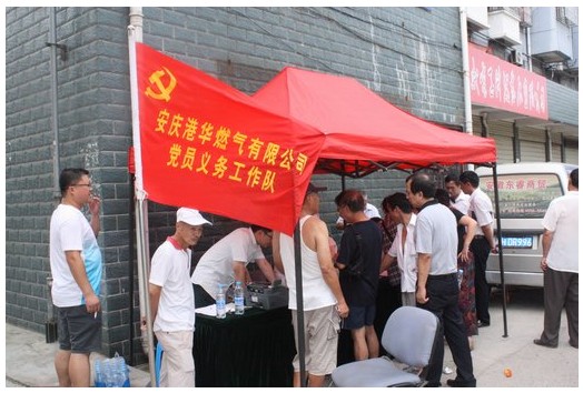 二是開展“黨員奉獻(xiàn)日”活動(dòng)。7月5日上午,公司黨員義工隊(duì)在渡江路小區(qū)開展一次“黨員奉獻(xiàn)日”活動(dòng)?;顒?dòng)以“展黨員風(fēng)采,樹黨員形象”為主題,以深入社區(qū)開展為民服務(wù)活動(dòng)為內(nèi)容,推介清潔新能源,實(shí)踐為客戶服務(wù)零距離?;顒?dòng)當(dāng)天,為近百戶居民辦理了天然氣開戶手續(xù),為十余戶居民免費(fèi)維修了燃器具,不僅滿足了廣大居民的燃?xì)庑枨螅疫€樹立企業(yè)良好形象。