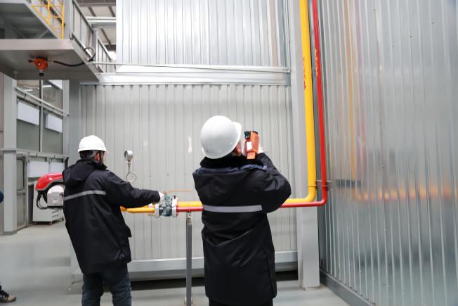 在生產(chǎn)車間內(nèi),服務(wù)組通過(guò)紅外測(cè)漏儀等探漏設(shè)備對(duì)管道運(yùn)行情況進(jìn)行細(xì)致檢查,逐一查看壓力表和燃?xì)鈭?bào)警器上的相關(guān)信息,確保每一處生產(chǎn)設(shè)備的燃?xì)馐褂冒踩?。在檢查的同時(shí),服務(wù)組還就廠區(qū)內(nèi)燃?xì)庠O(shè)備設(shè)施的實(shí)際情況,與廠房相關(guān)部門負(fù)責(zé)人進(jìn)行了現(xiàn)場(chǎng)宣講,并表示,無(wú)論遇到任何用能問(wèn)題,都?xì)g迎隨時(shí)來(lái)電反映,安慶港華將第一時(shí)間上門提供服務(wù)。